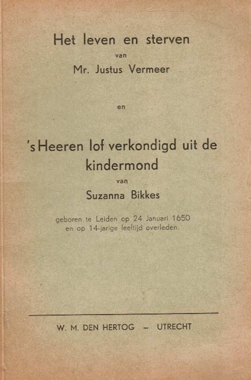 OverzichtHet leven en sterven van Mr. Justus Vermeer, en 's Heeren lof verkondigd uit de kindermond van Suzanna Bikkes, geboren te Leiden 0p 24 Januari 1650.