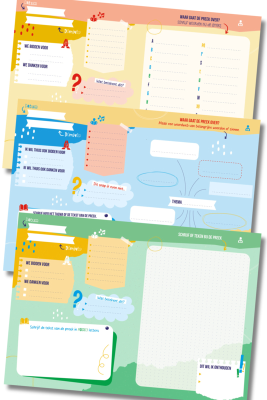 Het boekje in A5 formaat bevat 48 bladzijden (in kleur) voor aantekeningen van 23 diensten. Waaronder 2 doopdiensten en 1 avondmaalsdienst achterin het boekje.