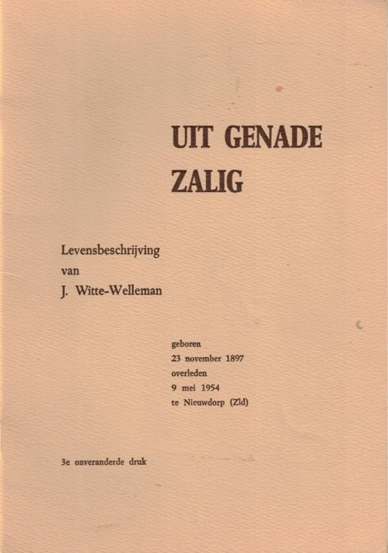 Uit genade zalig-Levensbeschrijving van J. Witte-Welleman, geboren 23 november 1897, overleden 9 mei 1954 te Nieuwdorp (Zld)
