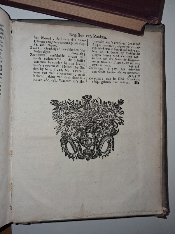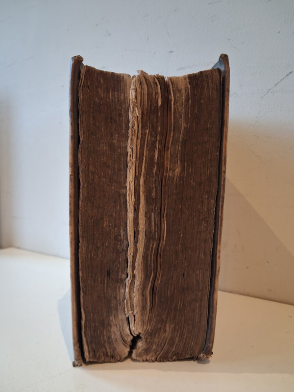Gebonden, perkament met opdruk op rug, middenin 300 blz. met papierverlies (zie foto's), paar gebruikerssporen, overigens goed.