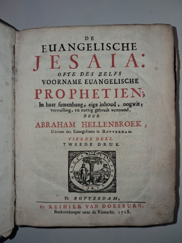 OverzichtDe Euangelische Jesaia ofte des zelfs voorname Euangelische Prophetien in haar samenhang, eige inhoud, oogwit, vervulling en nuttig gebruik vertoond, door Abraham Hellenbroek, Dienaar van het Euangeliums te Rotterdam.