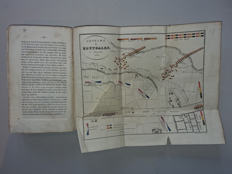 - Uitvouwbaar plan gedeeltelijk ingekleurd 'Gevecht bij Houthallen 6 Augustus 1831'