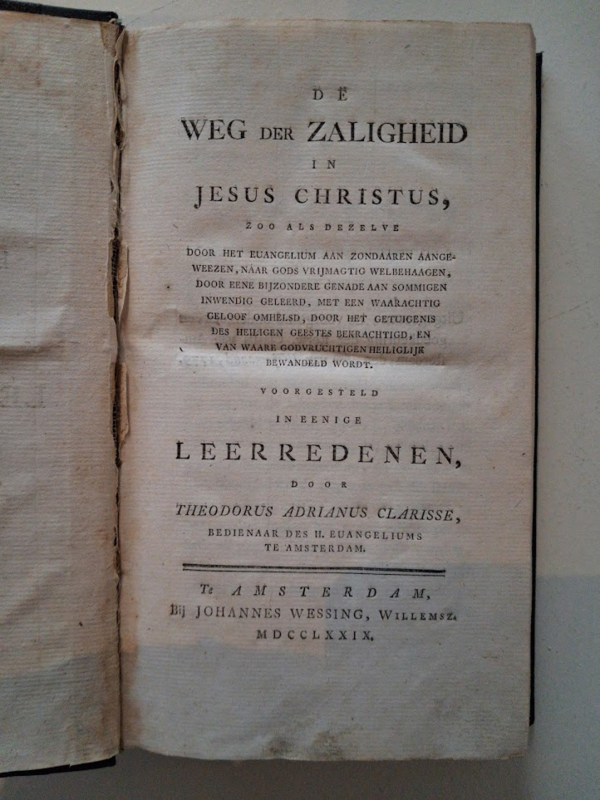 OverzichtDe Weg der Zaligheid in Jesus Christus, voorgesteld in eenige Leerredenen door Theodorus Adrianus Clarisse, bedienaar des H. Eugangeliums te Amsterdam.