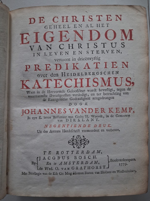 OverzichtDe Christen geheel en al het eigendom van Christus in leven en sterven door Johannes van der Kemp, Bedienaer van Godts H. Woordt te Dirxlant.