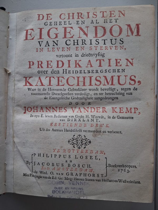 OverzichtDe Christen geheel en al het eigendom van Christus in leven en sterven door Johannes van der Kemp, Bedienaer van Godts H. Woordt te Dirxlant.