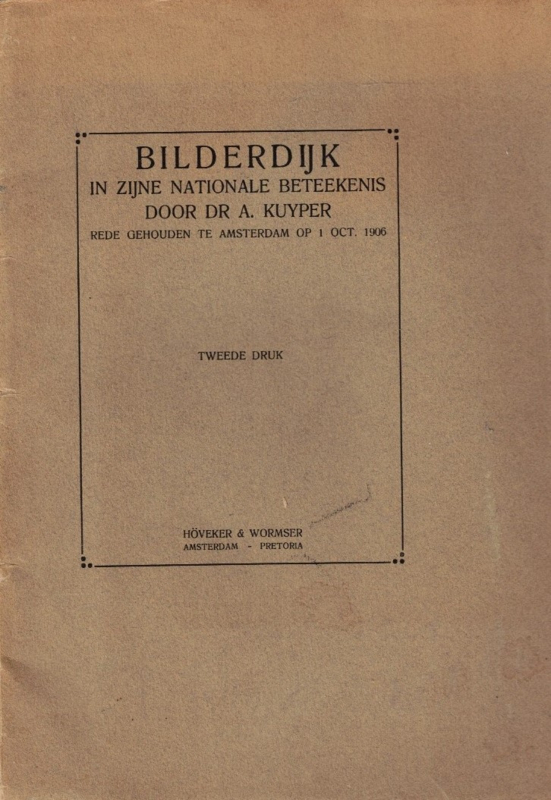 OverzichtBilderdijk in zijne Nationale Beteekenis door dr. A. Kuyper, rede gehouden te Amsterdam op 1 oct. 1906.