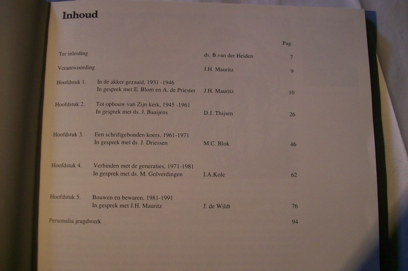 Er zijn interviews opgenomen met E. Blom, A. de Priester, ds. J. Baaijens, ds. J. Driessen, ds. M. Golverdingen en J.H. Mauritz.