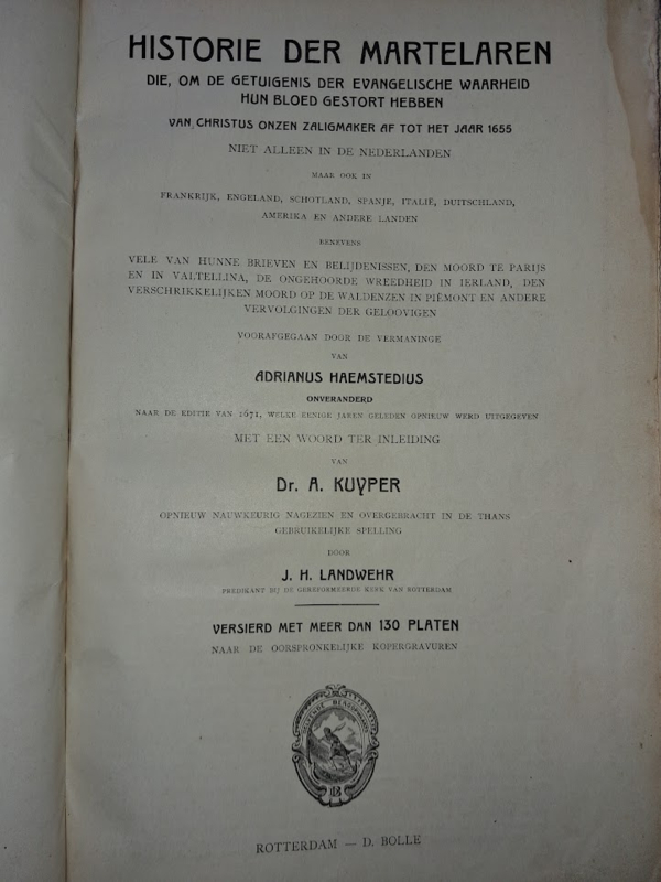 - Een drievoudige waarschuwing aan de Gereformeerde christenheid bij het lezen van haar martelaarsboek, gegevn bji de uitgave van Ao. 1881 door dr. A. Kuyper.